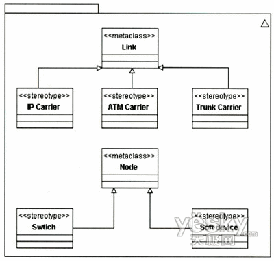 該擴(kuò)展針對Link和Node和兩個元類增加了NGN中關(guān)于承載和節(jié)點的定型?梢愿鶕(jù)需要對該模型作進(jìn)一步擴(kuò)展,如可以增加關(guān)于接入網(wǎng)承載的定型等。