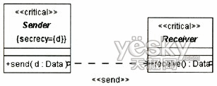 如果需要實現(xiàn)的機(jī)密性保護(hù),則Sender類和Receiver類的約束用{secrecy}表示?赏ㄟ^GSS-API的GSS_Warp()方法和GSS_Unwrap()方法實現(xiàn)Sender和Receiver的安全功能。