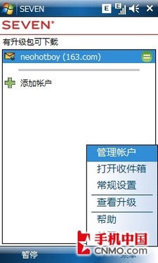 昨天在逛壇子時,筆者發(fā)現(xiàn)了一款基于WM5/WM6系統(tǒng)下的PushMail免費軟件——SEVEN,經(jīng)過試用,感覺非常不錯,對WM郵件系統(tǒng)起到了非常好的補充作用,在這里和大家分享一下。