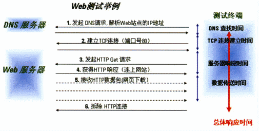 在用戶對(duì)無線數(shù)據(jù)業(yè)務(wù)的訪問過程中,通常會(huì)包含多個(gè)階段(業(yè)務(wù)處理過程)。如當(dāng)用戶在使用手機(jī)要瀏覽網(wǎng)頁的時(shí)候,先輸入網(wǎng)頁的地址,然后按手機(jī)上的“訪問”按鈕,一段時(shí)間后手機(jī)的屏幕上就會(huì)顯示出要瀏覽的網(wǎng)頁頁面。看似簡(jiǎn)單的過程,其實(shí)這里面包含了以下幾個(gè)步驟:DNS查找時(shí)間、TCP連接時(shí)間、服務(wù)器響應(yīng)時(shí)間和數(shù)據(jù)下載時(shí)間。在這中間,只要任何一步出了問題,如DNS解析時(shí)間過長、TCP連接建立時(shí)間過長、應(yīng)用服務(wù)器負(fù)載過重、網(wǎng)絡(luò)可用信道資源少而造成數(shù)據(jù)下載慢,都可能會(huì)造成頁面下載失敗。因此,為了能準(zhǔn)確地定位造成用戶對(duì)Web服務(wù)質(zhì)量感知度差的原因,我們就需要得到各階段的性能參數(shù),這樣才能快速地進(jìn)行相關(guān)服務(wù)器和網(wǎng)絡(luò)的故障查找并解決問題。