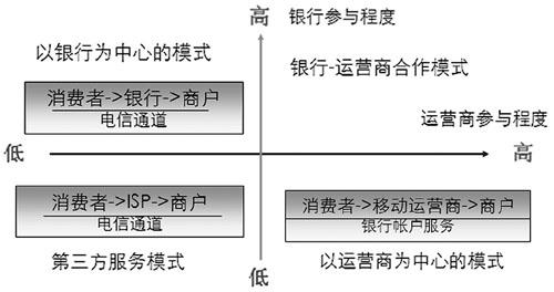 系統(tǒng),通過(guò)定制終端,電信運(yùn)營(yíng)商可以將各種先進(jìn)的移動(dòng)應(yīng)用提供給用戶,使用戶獲得良好的移動(dòng)化生活體驗(yàn)。因此,電信運(yùn)營(yíng)商在移動(dòng)支付方面具有較好的用戶資源和營(yíng)銷渠道?梢,電信運(yùn)營(yíng)商和銀行的協(xié)作程度在很大程度上決定了移動(dòng)支付商業(yè)模式的績(jī)效水平。