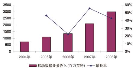 圖1 沃達(dá)豐數(shù)據(jù)業(yè)務(wù)收入情況