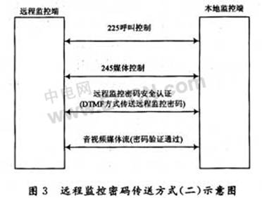 如圖3所示,在呼叫控制和媒體控制過(guò)程后傳送和驗(yàn)證遠(yuǎn)程監(jiān)控密碼的方式,具體過(guò)程如下: