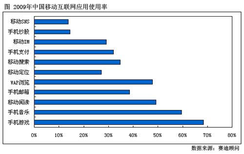 圖:2009年中國移動互聯(lián)網(wǎng)應用使用率