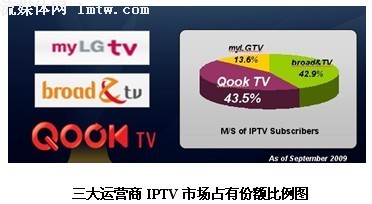 從今年一月份韓國IPTV正式開通至今,經(jīng)過九個月的發(fā)展,IPTV用戶人數(shù)已經(jīng)突破100萬,如果包括視頻點播的所有網(wǎng)絡電視用戶,合計用戶數(shù)量已為201萬。據(jù)預測,年底之前,韓國IPTV用戶將達到150萬戶,并有望在明年突破200萬。本文將以KT為例為業(yè)內(nèi)介紹IPTV在韓國的發(fā)展具體態(tài)勢。