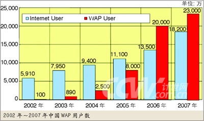 2002年~2007年中國WAP用戶數