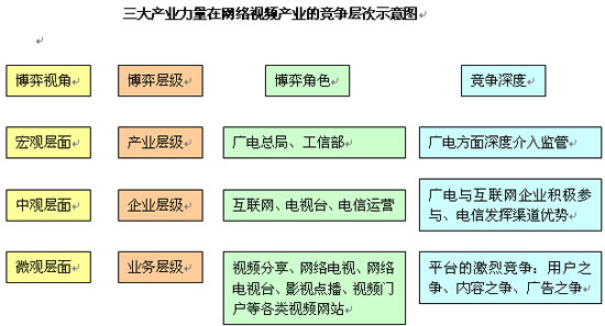 電信運營商坐擁龐大的網絡資源,市場規(guī)模大,盈利途徑多樣,網絡視頻作為寬帶增值業(yè)務當中的一種細分業(yè)務,還未能引起電信大規(guī)模的投入。然而,依靠自身天然的帶寬資源優(yōu)勢,電信運營商的轉型必然會將觸角伸向網絡視頻領域,與廣電系、民營系展開競爭。電信運營商擁有資金的優(yōu)勢,但在內容資源和視頻技術上處于弱勢,這正是網絡視頻市場競爭的核心。除了搭建與上游內容提供商的合作外,還需要尋求與廣電系內容提供商的合作。另外,電信運營商通過與擁有先進視頻支撐技術的民營視頻網站合作以獲取技術支持也必不可少。