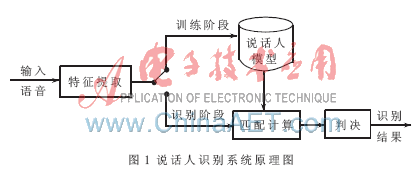 說話人識(shí)別又被稱為話者識(shí)別,是指通過對(duì)說話人語音信號(hào)的分析處理,自動(dòng)確認(rèn)說話人是否在所記錄的話者集合中,以及進(jìn)一步確認(rèn)說話人的身份。說話人識(shí)別的基本原理如圖1所示。
