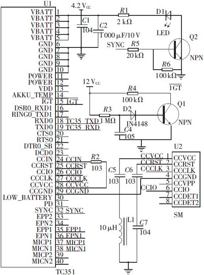 的數(shù)據(jù)接口通過AT命令可以雙向傳輸指令和數(shù)據(jù),可選波特率為300b/s~115kb/s,自動波特率為1.2kb/s~115kb/s;支持TEXT和PDU格式的SMS,可通過AT命令或關(guān)斷信號實現(xiàn)重啟和故障修復。TC35I模塊主要由供電模塊、閃存、ZIF連接器、天線接口等6部分組成,作為TC35I的核心,基帶處理器主要處理GSM終端內(nèi)的語音和數(shù)據(jù)信息,并涵蓋了蜂窩射頻設(shè)備中的所有模擬和數(shù)字功能。