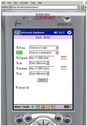 具有語音識(shí)別功能的、面向Pocket PC的應(yīng)用的演示畫面