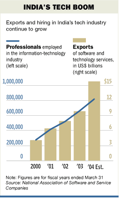 據(jù)印度軟件科技園的官員們介紹,在高科技中心班加羅爾,每周都會(huì)有兩三家西方公司的新業(yè)務(wù)在此開張,越來(lái)越多的公司將從軟件開發(fā)到企業(yè)后勤支持等工作外包給印度。