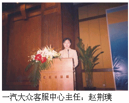 一汽大眾客服中心主任趙荊璞由于其在客戶服務(wù)方面的杰出貢獻(xiàn)被評為"2005中國最佳呼叫中心管理人",并作為獲獎代表在大會上發(fā)了言。?