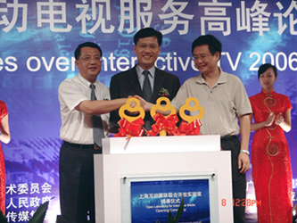 市科委主任李逸平在講話中表示,作為國家數(shù)字電視先行先試城市,上海高度重視數(shù)字電視互動(dòng)技術(shù)的發(fā)展。“上;(dòng)媒體聯(lián)合開放實(shí)驗(yàn)室”成立,是推進(jìn)上海互動(dòng)電視產(chǎn)業(yè)化發(fā)展、探索“三網(wǎng)融合”發(fā)展的又一舉措。國家重大專項(xiàng)“高性能寬帶信息網(wǎng)”落地上海,率先開通了包括1路高清和116路標(biāo)清的互動(dòng)電視服務(wù),推動(dòng)互動(dòng)電視在長寧、浦東、閘北等地試驗(yàn)示范,讓互動(dòng)電視不再高不可攀,而是走入了尋常百姓家。
