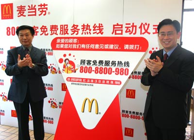 麥當(dāng)勞開(kāi)通長(zhǎng)三角800顧客免費(fèi)服務(wù)熱線