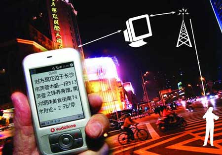 編輯你所要尋找對(duì)象的手機(jī)號(hào)碼發(fā)送到一個(gè)指定的號(hào)碼“05058”,就能立刻掌握機(jī)主所處的準(zhǔn)確位置——這聽起來比重案組破案還要玄,但現(xiàn)在已成現(xiàn)實(shí)。
