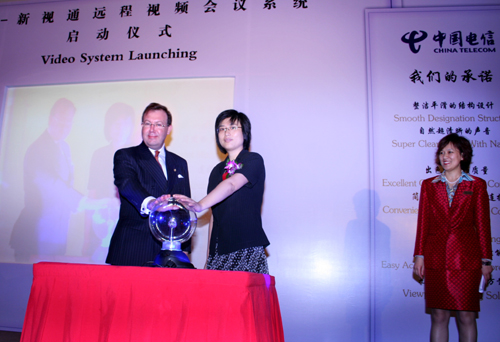 在新聞發(fā)布會儀式上,來自中國電信和北京國賓酒店信息中心的技術人員為來賓們現(xiàn)場演示了這套視頻會議系統(tǒng),國賓酒店安裝的這套全球先進的“新視通”視頻會議系統(tǒng),是一款高檔分體式的會議室型終端服務體系,它可以提供非常靈活可靠及強大的功能,完全可以滿足各種會議室、教室或中小規(guī)模的會議應用環(huán)境。采用專門集成的音響系統(tǒng),利用“新視通”的專利技術,提升了音頻質(zhì)量。通過雙揚聲器和雙麥克風,可以清晰的聽到每個發(fā)言人的聲音,輕松辨別多個發(fā)言人的同時談話,感受純正、豐滿的音頻質(zhì)量。與其他運營商推出的視訊業(yè)務相比,
