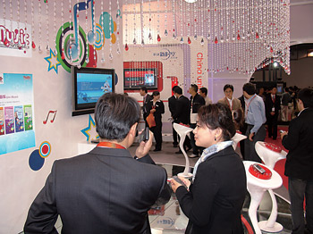 在通信展上,中國(guó)移動(dòng)在展場(chǎng)核心區(qū)展示了面向2008年奧運(yùn)會(huì)的奧運(yùn)無(wú)線業(yè)務(wù)和全曲下載“音樂隨身聽”,中國(guó)聯(lián)通則重點(diǎn)展示了其最具特色的整首音樂下載業(yè)務(wù),吸引了大批觀眾。許多觀眾還在中國(guó)移動(dòng)和中國(guó)聯(lián)通無(wú)線音樂展臺(tái)前,現(xiàn)場(chǎng)聆聽各種動(dòng)聽的歌曲,體驗(yàn)無(wú)線音樂的魅力?梢哉f(shuō),手機(jī)音樂成為手機(jī)娛樂業(yè)務(wù)中最受人們關(guān)注的亮點(diǎn)。