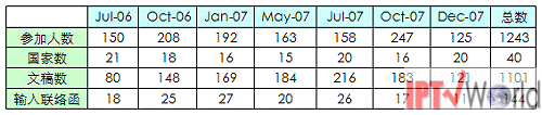 FG IPTV第七次會(huì)議共有來自全球近160名專家參加了會(huì)議,共收到文稿119篇。中國有20名專家參加了會(huì)議,提交文稿37篇,文稿主要集中在體系架構(gòu)、需求、安全、服務(wù)質(zhì)量、中間件等方面。此次會(huì)議的所有輸出文檔將輸入到相應(yīng)的研究組(SG)當(dāng)中。此次會(huì)議由于要對所有的輸出文檔進(jìn)行最后的整理、完善,因此日程非常緊張,每個(gè)工作組都幾乎每天工作到深夜,以便能夠保證所有輸出的工作文檔的質(zhì)量。