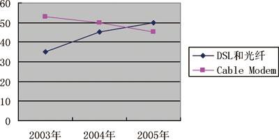 市場(chǎng)研究公司ParksAssociates最新發(fā)布的研究報(bào)告稱(chēng),2007年美國(guó)住宅用戶的寬帶網(wǎng)普及率將超過(guò)50%,美國(guó)住宅寬帶網(wǎng)用戶將超過(guò)6000萬(wàn),這些用戶都可以通過(guò)寬帶接入享受三種業(yè)務(wù)捆綁服務(wù)。由于電信公司的寬帶接入技術(shù)占優(yōu)勢(shì),因而在三種業(yè)務(wù)捆綁服務(wù)方面,電信公司占有競(jìng)爭(zhēng)優(yōu)勢(shì)。所以,凡是在兩家有競(jìng)爭(zhēng)的地方,有線電視公司都無(wú)例外地降低了價(jià)格,并失去了相當(dāng)一部分傳統(tǒng)市場(chǎng)。