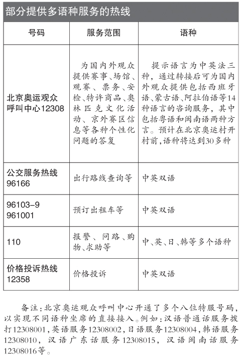 奧運(yùn)觀眾可享14種語言服務(wù) 撥12308可查信息