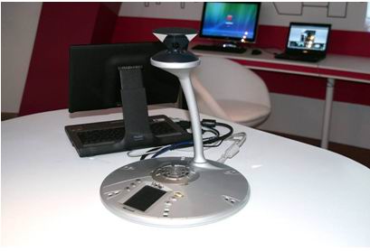 在耐心聽完介紹后,禁不住誘惑,我便親自做了現(xiàn)場(chǎng)體驗(yàn),原來這套系統(tǒng)所使用的360o攝像頭不同于一般的攝像頭,它集4個(gè)攝像頭以及USB設(shè)備為一體,不改變位置就能輕松實(shí)現(xiàn)360度全景覆蓋,讓所有人真正面對(duì)面交流。而投影儀的界面設(shè)定更是人性化,界面分上下兩部份,上半部分顯示的是PPT內(nèi)容和發(fā)言者,下半部分顯示的是與會(huì)人員。而它的智能語音識(shí)別系統(tǒng)更是讓人叫絕,投影儀上的發(fā)言區(qū)頭像根據(jù)發(fā)言者的聲音自動(dòng)更換,而不受人聲以外的任何聲音的干擾。系統(tǒng)并附帶情景解說詞,系統(tǒng)會(huì)自動(dòng)介紹與會(huì)人員所在地。在投放PPT界面旁邊有個(gè)信息欄,在上面能夠看到負(fù)責(zé)人的在線信息,并且可以選擇最合適的方式進(jìn)行溝通,不但可以發(fā)即時(shí)消息和傳輸文件,還可以進(jìn)行語音通話,甚至可以直接用語音連接辦公室電話,只要有網(wǎng)絡(luò),隨便哪里都可以接得到辦公室電話。