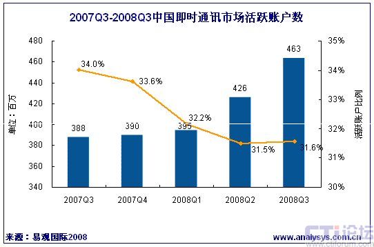 2008年第3季中國即時通訊活躍帳戶數(shù)達4.63億