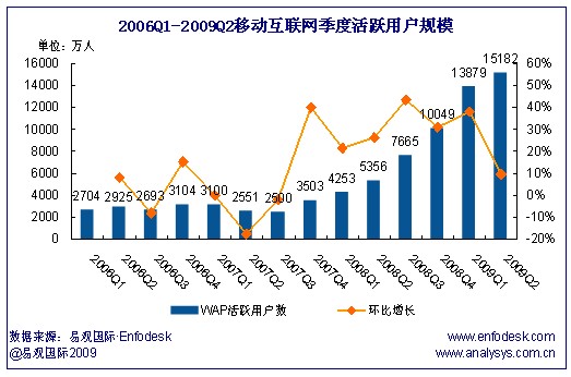 2009年第2季度中國移動互聯(lián)網(wǎng)活躍用戶規(guī)模達(dá)1.52億