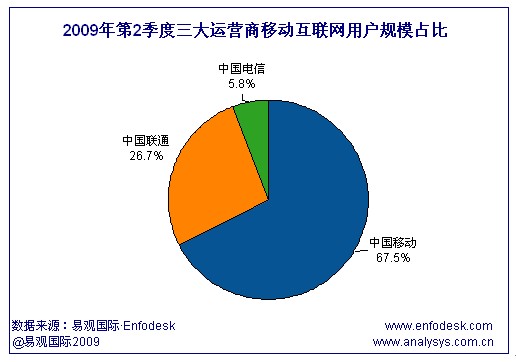 易觀國際(Analysys International)研究發(fā)現(xiàn),相比2009年第1季度,中國聯(lián)通、中國電信的移動互聯(lián)網(wǎng)用戶規(guī)模占比都有小幅增長。尤其是中國電信,在2009年5月17日正式推出WAP業(yè)務(wù)并輔以豐富應(yīng)用,在某種程度上加速了中國電信移動互聯(lián)網(wǎng)用戶規(guī)模的小幅攀升。