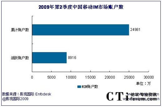 2009年第2季度中國移動(dòng)IM市場活躍賬戶數(shù)達(dá)8916萬