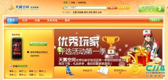 四川電信天翼空間應(yīng)用商城公測(cè)版的上線公告中稱,該商城不僅為廣大用戶提供手機(jī)應(yīng)用下載,更為手機(jī)應(yīng)用開(kāi)發(fā)商提供在線銷售的平臺(tái)。四川電信應(yīng)用商城目前推出了主要11類應(yīng)用,包括游戲、主題、娛樂(lè)、生活、閱讀、通訊、商務(wù)、旅行、教育、財(cái)經(jīng)、工具;軟件平臺(tái)包括WindowsMobile、 Symbian、Java、widget、BlackBerry等。