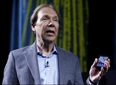 圖:Sprint CEO丹·海斯(Dan Hesse)在美國無線通信展上展示宏達電新手機Evo 4G