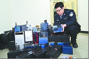 昨天,西城公安分局通報(bào),警方一舉搗毀5個(gè)特大手機(jī)短信群發(fā)窩點(diǎn),抓獲8名嫌疑人,并以涉嫌非法經(jīng)營罪予以刑事拘留。這是本市警方首拘短信群發(fā)人,今后一旦發(fā)現(xiàn)類似情況都以相同手段處理。