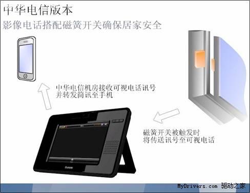 除多媒體服務(wù),AMOR8210內(nèi)建之千里眼服務(wù)更突破業(yè)界標(biāo)準(zhǔn)使其與磁簧開(kāi)關(guān)整合提供居家安全嶄新服務(wù)。當(dāng)磁簧開(kāi)關(guān)被觸發(fā)告警時(shí),AMOR8210攝影鏡頭將開(kāi)啟錄像功能并上傳畫面且同步發(fā)送簡(jiǎn)訊至行動(dòng)電話通知使用者接著使用者可透過(guò)3G手機(jī)觀看錄像檔案或直接撥接AMOR8210進(jìn)行實(shí)時(shí)監(jiān)控。