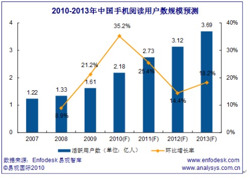 易觀國際(Analysys International)分析預(yù)計(jì)2010年手機(jī)閱讀市場規(guī)模將突破30億元。