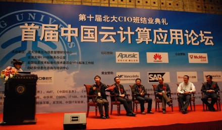 CTI論壇(ctiforum)1月12日消息(記者 楊佳林):2011年1月9日,首屆中國云計算應用論壇在北京大學英杰交流中心隆重舉行。本次論壇由北大信息化與信息管理研究中心、北大CIO班教務辦公室主辦,全國信準委SOA標準工作組、北達軟協(xié)辦,CIO時代網承辦。業(yè)界權威專家、北大CIO班學員、特邀企事業(yè)單位CIO、IT經理等信息化負責人及知名IT廠商代表300余人圍繞云計算的產業(yè)鏈、云計算平臺與技術、云計算的應用趨勢、云計算的安全問題、EA與云計算應用等議題展開了深入的探討和交流。