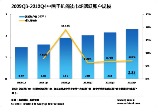 2010年第4季度中國手機閱讀用戶達2.33億