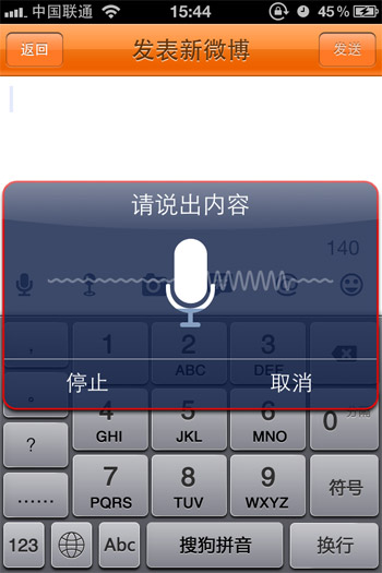 另外,在“發(fā)表新微博”輸入框底部,有明顯的語(yǔ)音輸入按鈕、位置定位等圖標(biāo),用戶點(diǎn)擊錄制微博,完畢后系統(tǒng)將會(huì)進(jìn)行識(shí)別計(jì)算,最后以文字形式呈現(xiàn)在輸入框中。據(jù)悉,此種方式采用了科大訊飛語(yǔ)音輸入技術(shù),但經(jīng)實(shí)際試用發(fā)現(xiàn),目前測(cè)試版本還還存在一定問(wèn)題,對(duì)方言、同音字、語(yǔ)音速度、使用環(huán)境影響比較大,實(shí)際使用起來(lái)識(shí)別的效率并不高。
