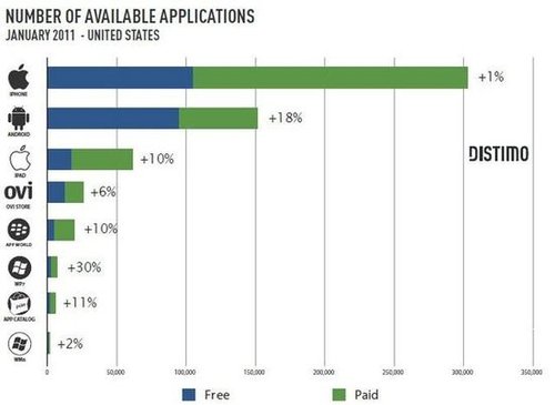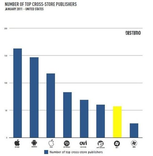 專注于App Store發(fā)展得研究者Distimo昨天公布了一份有關(guān)手機(jī)應(yīng)用程序商店的市場(chǎng)報(bào)告,報(bào)告顯示W(wǎng)indows Phone 7的增長速度高達(dá)30%。