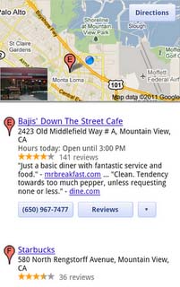 當(dāng)用戶在移動設(shè)備上搜索周圍商店位置時,那么他當(dāng)前所在的位置將出現(xiàn)在地圖上,而且地圖上還會顯示用戶周邊營業(yè)場所的位置。