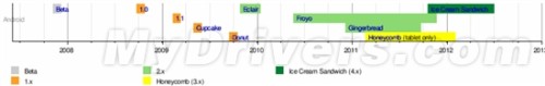 從紙杯蛋糕Cupcake(Android 1.5)開始,隨后是甜甜圈Donut(Android 1.6),松餅Eclair(Android 2.0/2.1),凍酸奶Froyo(Android 2.2),姜餅Gingerbread(Android 2.3),蜂巢Honeycomb(Android 3.0/3.1/3.2),冰激凌三明治Ice Cream Sandwich(Android 4.0)。而即將到來的Android則會(huì)是則會(huì)是果凍豆(Jelly Bean)。