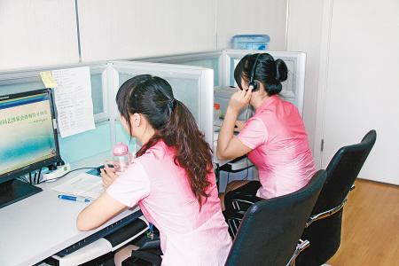 “您好,很高興為您服務(wù)。”一推開(kāi)世園會(huì)咨詢投訴熱線辦公室的門,記者就被耳邊這溫柔的聲音所吸引。辦公室小而整潔,呈回字形布置著七張辦公桌。桌前身著粉紅制服的美麗姑娘們,就是這溫柔嗓音的主人世園會(huì)83596666咨詢投訴熱線的話務(wù)員們。