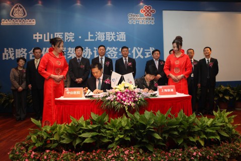 圖:中山醫(yī)院秦新裕書記、樊嘉副院長、汪昕副院長以及上海聯(lián)通蔡全根總經理出席簽約儀式