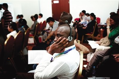 昨日,京交會(huì)上,“中國分銷服務(wù)業(yè)企業(yè)走出去”會(huì)場,一位外籍嘉賓在認(rèn)真聽同聲傳譯。新京報(bào)記者 孫純霞 攝