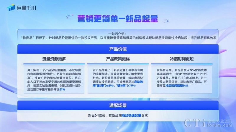對(duì)于在618好物節(jié)期間想借助流量上行期推新品的商家,「新品起量」助力商家在推商品階段,以多重流量策略和極簡的創(chuàng)編模式幫助新品快速度過冷啟階段,提升新品孵化效率,讓營銷變得更簡單。前期實(shí)驗(yàn)數(shù)據(jù)表明,對(duì)比常規(guī)計(jì)劃冷啟動(dòng)期訂單量可提升61%。
