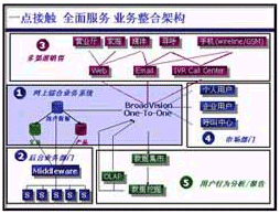 在“一對(duì)一模式”中,BroadVision公司可以為原有后臺(tái)系統(tǒng)提供有機(jī)的整合(如連接用戶的記費(fèi)、業(yè)務(wù)、用戶數(shù)據(jù)系統(tǒng)),使其在前臺(tái)可提供多種用戶的接入手段,形成業(yè)務(wù)的完整流程,如通過(guò)多種接入手段提供查詢、咨詢、受理、投訴等業(yè)務(wù);電信企業(yè)還可通過(guò)此平臺(tái)提供增值業(yè)務(wù),如電子商務(wù)、信息服務(wù)、代繳費(fèi)等。