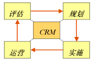 如圖所示,CRM的實施步驟是診斷-規(guī)劃-實施-評估的閉環(huán)的過程,保證了"大處著眼、小處入手、迅速見效"。這樣保證了既有長遠的規(guī)劃和目標(biāo),又能夠步步為營,鞏固實施成果。