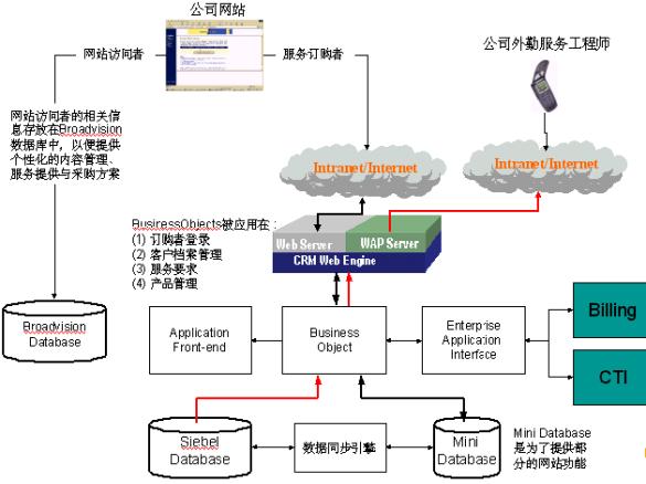 對于服務(wù)訂購者,公司持有其詳細的客戶資料與服務(wù)訂購歷史,該類用戶對服務(wù)信息的要求會較普通客戶更具體和具有針對性,其數(shù)據(jù)的安全性也更為重要,加之公司可能對于此類用戶進行服務(wù)的升級銷售或交叉銷售。正是處于以上各原因,公司對于此類用戶采用了Siebel數(shù)據(jù)庫系統(tǒng),并將其作為公司客戶信息的中心。同時,考慮到系統(tǒng)的安全性與性能,對于網(wǎng)上用戶建立了一個小型數(shù)據(jù)庫(mini