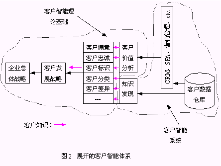 brains behind CRM)。二、圍繞客戶智能的實(shí)現(xiàn)的研究。Jim Berkowitz提出"商業(yè)智能是CRM的基礎(chǔ)"的觀點(diǎn)。另一個難得可貴的地方是該研究對商業(yè)智能包括的組件進(jìn)行了分析,將OLAP、數(shù)據(jù)倉庫、數(shù)據(jù)挖掘技術(shù)作為商業(yè)智能的必備組件。三、與客戶智能密切相關(guān)的研究。Emma