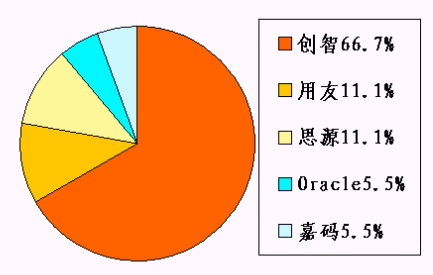 圖4:截至2003年10月底,管理軟件廠商在房地產(chǎn)CRM市場的份額統(tǒng)計(jì)。