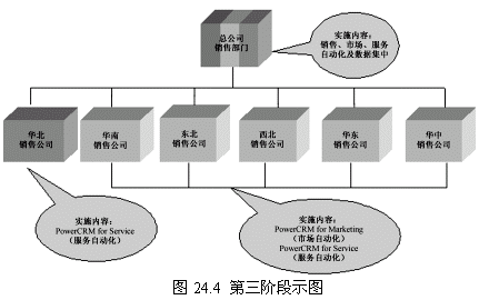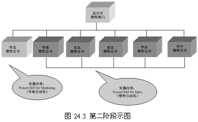 這一階段首先確立一個(gè)點(diǎn)(華北銷(xiāo)售公司),這個(gè)點(diǎn)的選擇要考慮多方面的因素,比如員工素質(zhì)、電腦應(yīng)用水平以及基礎(chǔ)設(shè)施等。第一階段目標(biāo)的實(shí)現(xiàn)對(duì)整個(gè)項(xiàng)目關(guān)系重大,是一個(gè)示范性的實(shí)施,對(duì)維持管理層和員工對(duì)CRM項(xiàng)目的信心具有重要的意義。